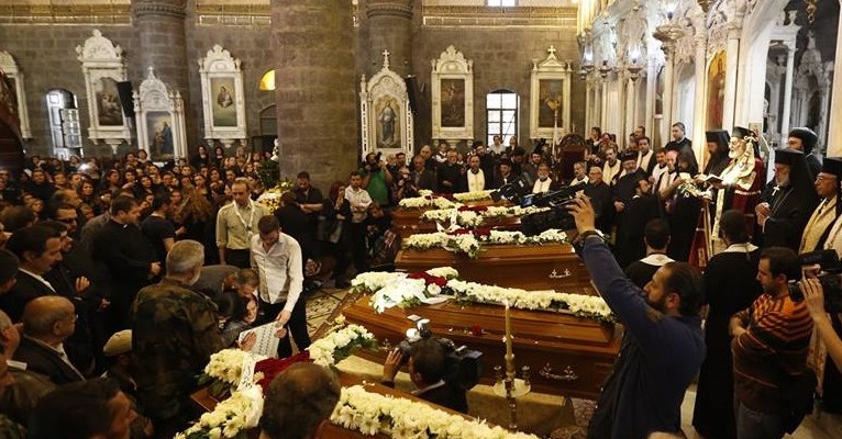 Op 25 april 2017 werden 5 jonge mannen begraven die in 2013 werden ontvoerd door strijders van de terreurbeweging Al-Nusra, een aan Al-Qaeda gelieerde militie die deelneemt aan de oorlog in Syrië. De 5 Aramese christenen werden op 7 september 2013 ontvoerd in Maaloula nadat Al-Nusra zich noodgedwongen moest terugtrekken. Voor een periode van drieënhalf jaar hoopten familie en vrienden dat de ontvoerde mannen veilig terug zouden keren. De lijken van de 5 mannen werden in Arsal (libanon) geïdentificeerd door de autoriteiten. De lijken warden overhandigd aan de Syrische autoriteiten. De rouwstoet vertrok naar Damascus waar een kerkdienst werd gehouden ter ere van de vermoorde mannen. De dienst was onder leiding van Zijne Heiligheid Gregory III Laham, patriarch van Melkitisch-katholieke Kerk in Syrië. Daarna werden de mannen begraven in Maaloula. Duizenden mensen waren aanwezig bij de begrafenis.