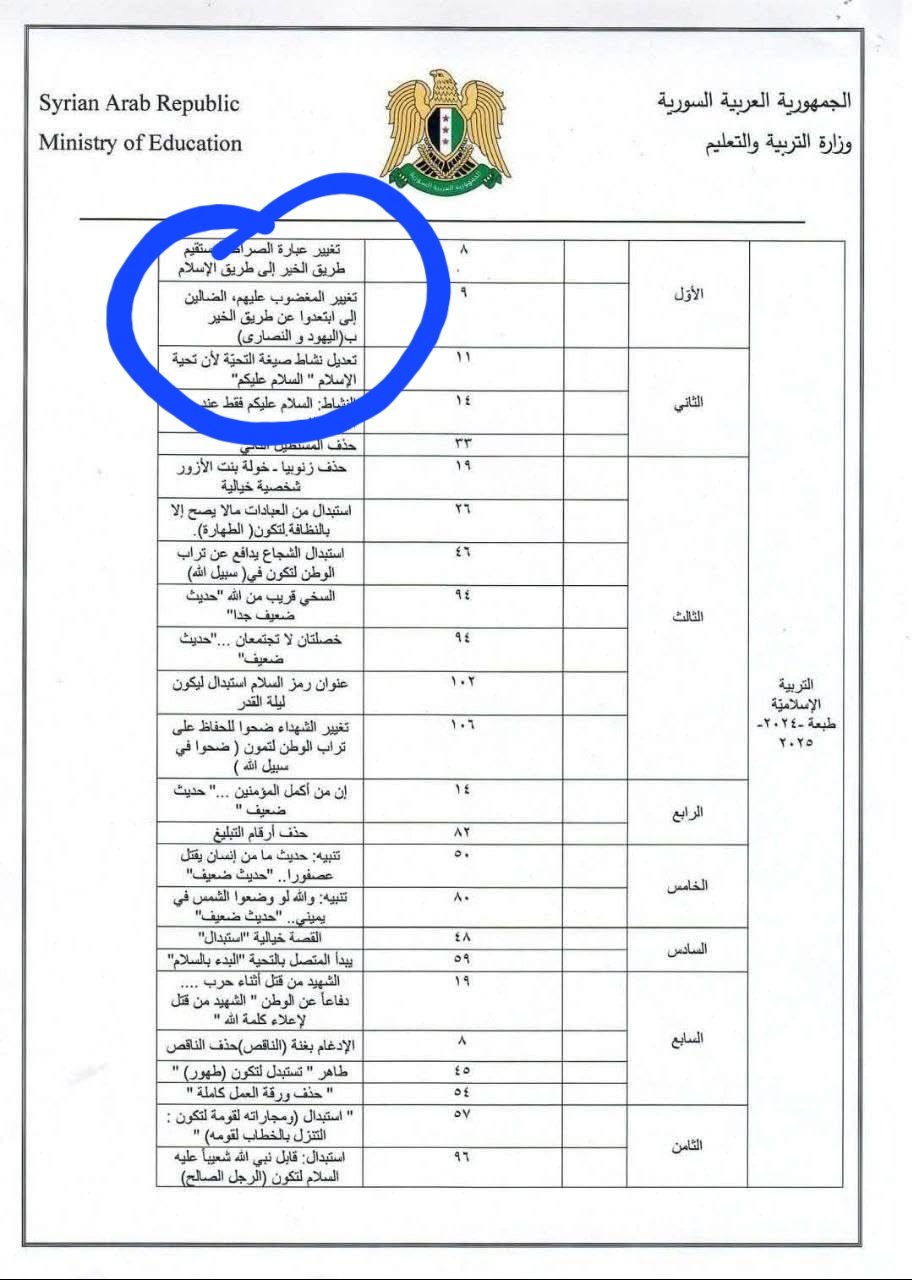 Het Syrische ministerie van Onderwijs heeft ingrijpende veranderingen in het curriculum doorgevoerd, die een radicale ideologie bevorderen (bijlage 3.1 & 3.2):